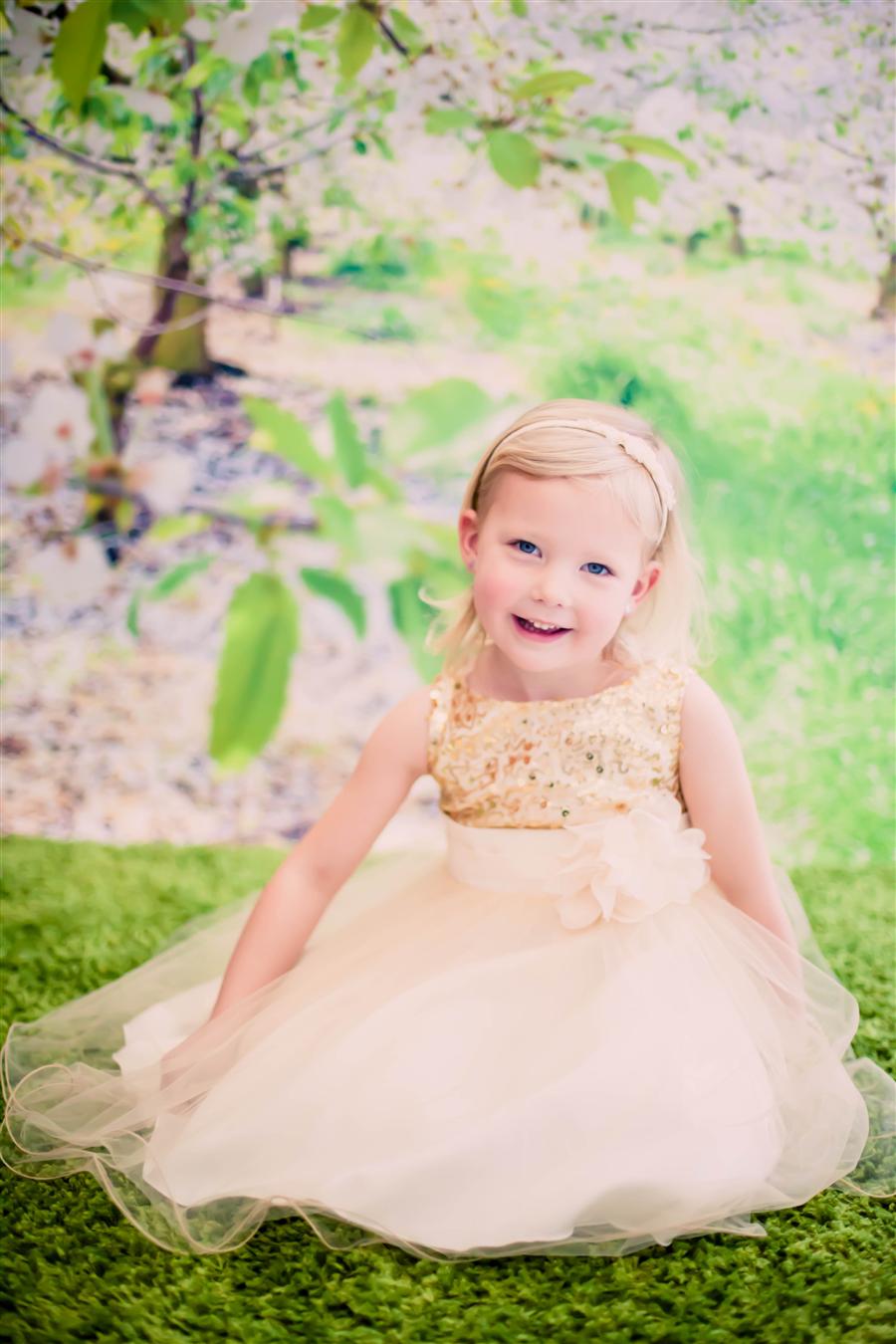 Sequin top, tulle skirt with ribboning on the edge. Zip up back.