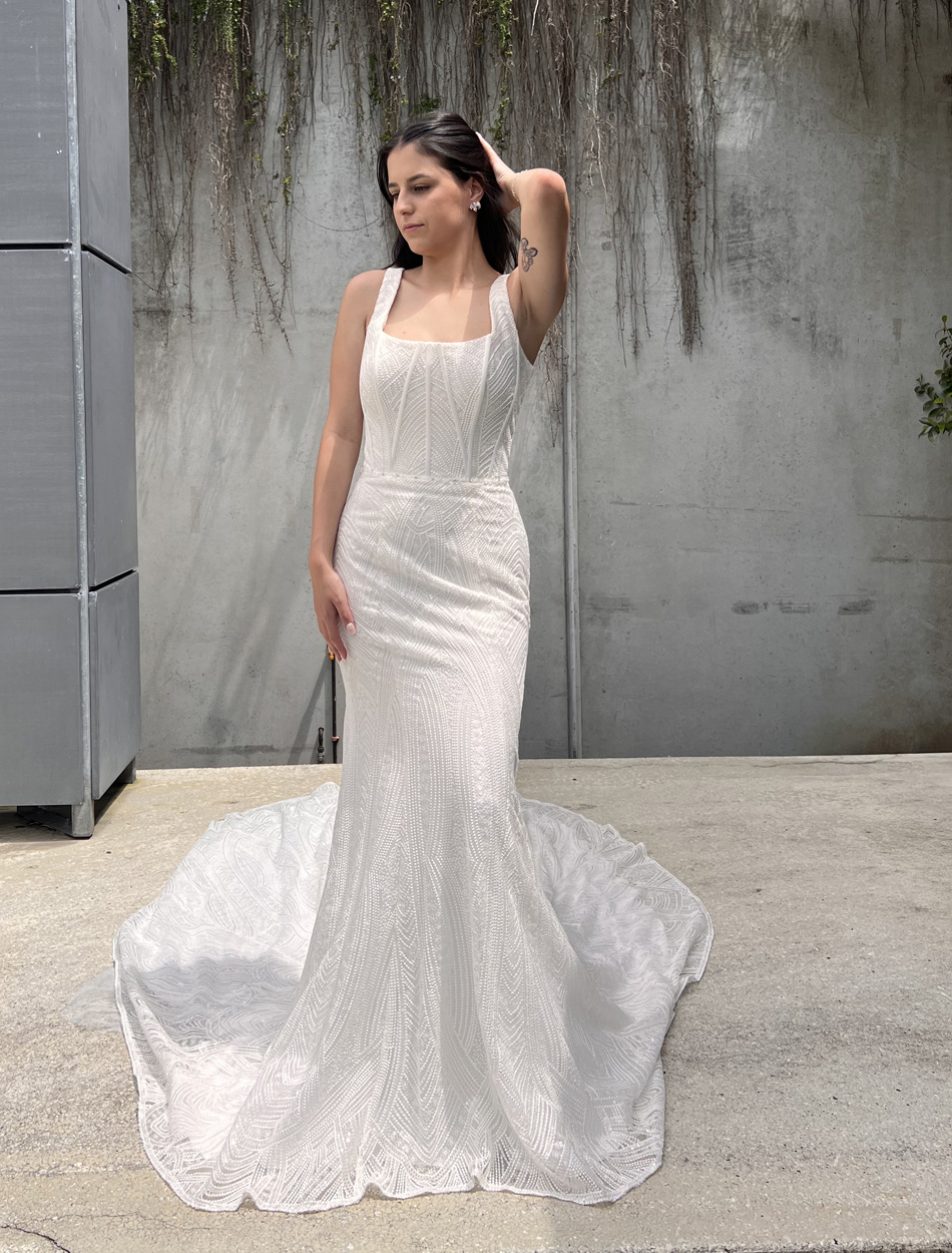 To determine if this gown will fit you, measure your bust, waist and hips (in Inches). See our easy guide on how to measure here