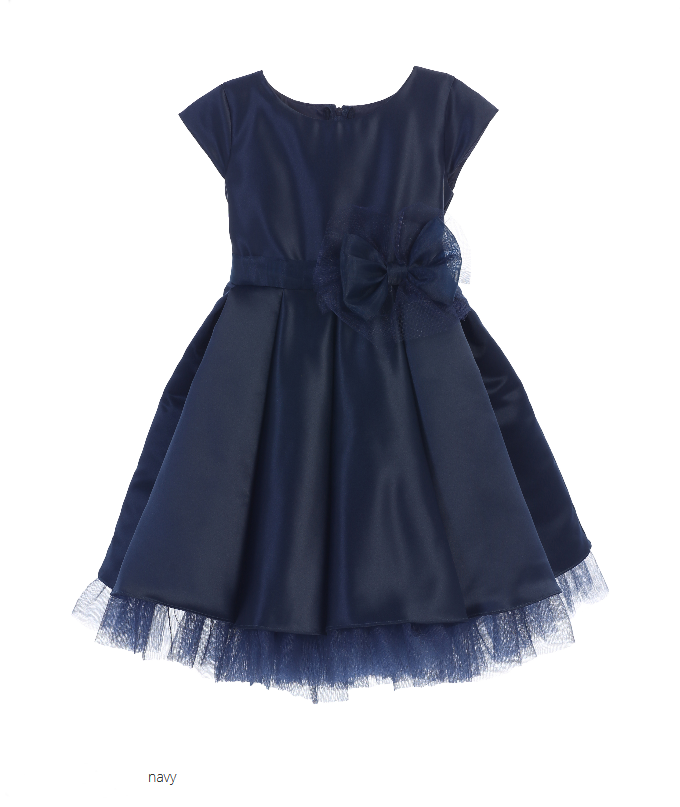 with a tulle underlay. Finished at the waist with an oversized bow made