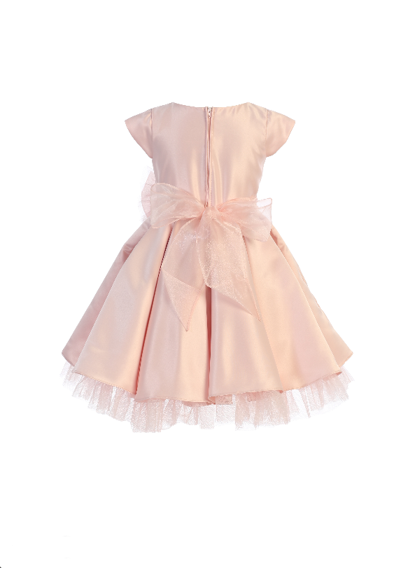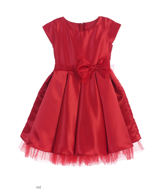with a tulle underlay. Finished at the waist with an oversized bow made