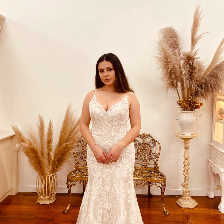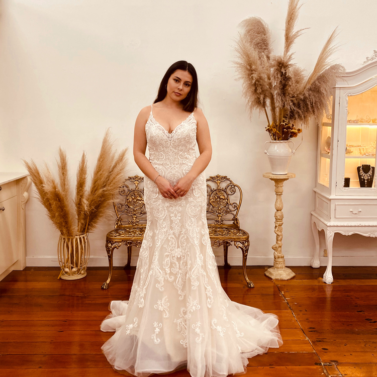 To determine if this gown will fit you, measure your bust, waist and hips (in Inches). See our easy guide on how to measure here