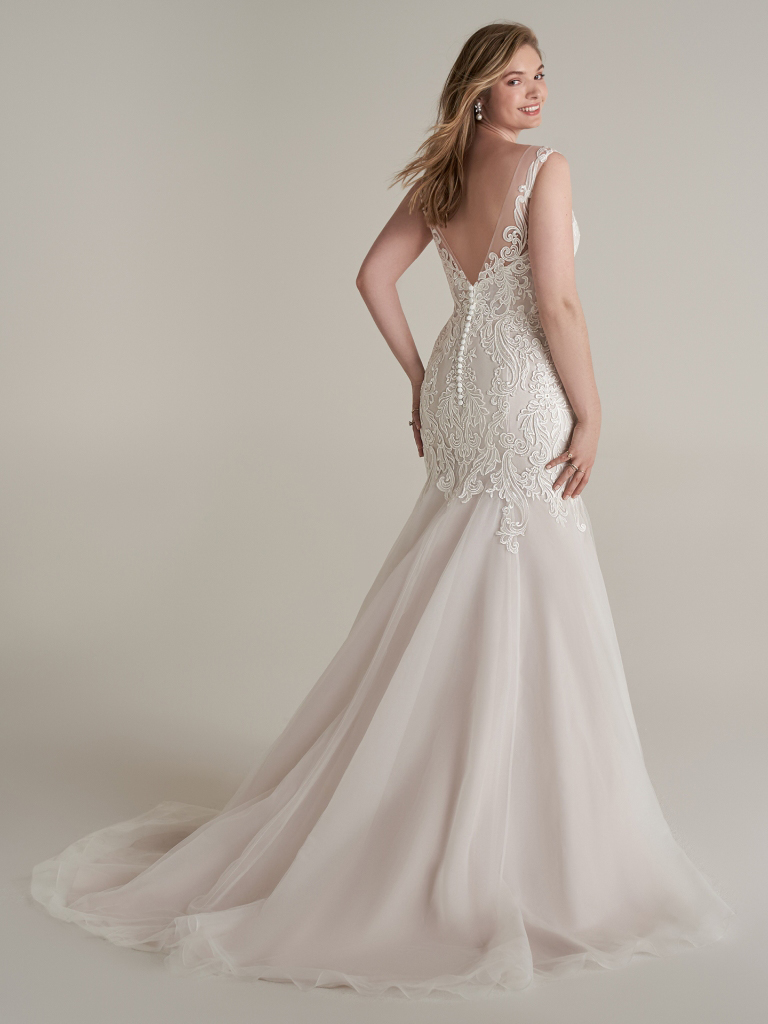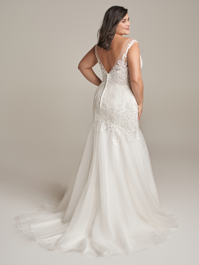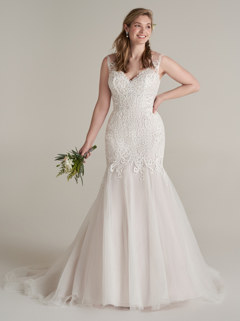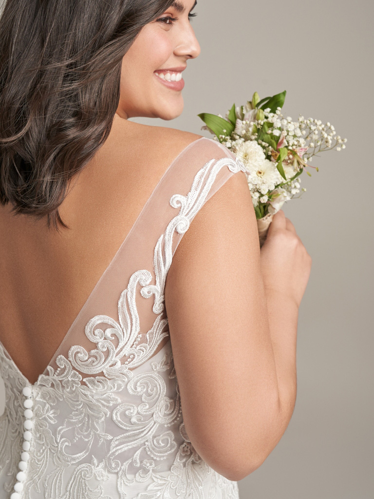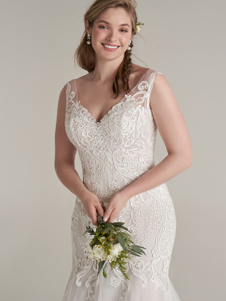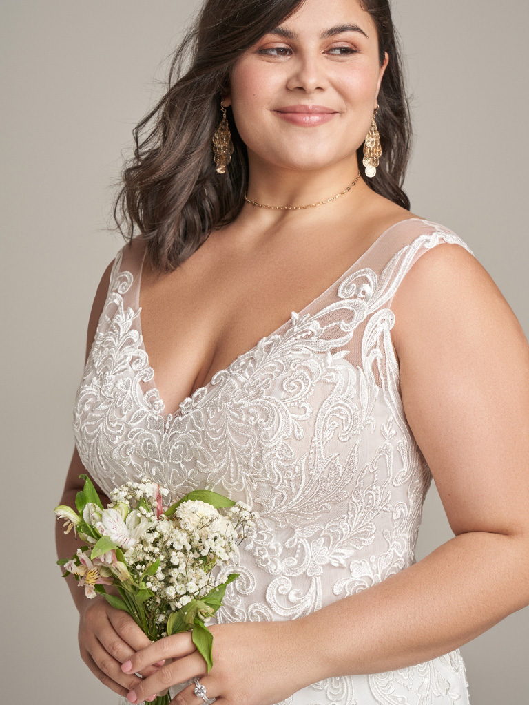 Plunging V-neck mermaid bridal gown with whimsical lace