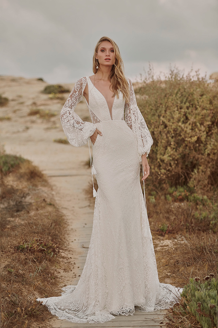 Stunning soft lace gown with a v neck.