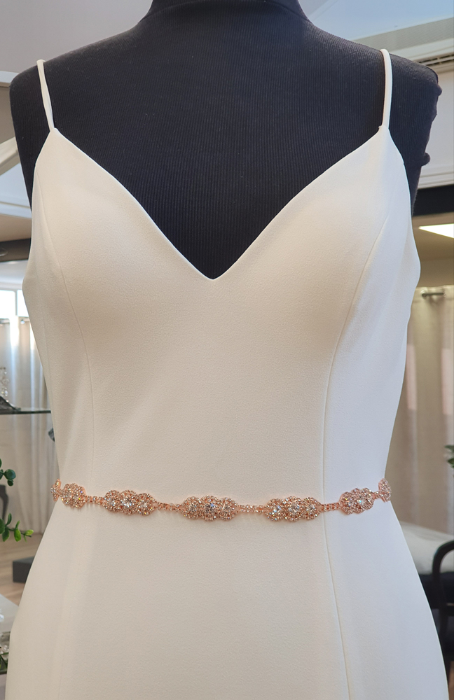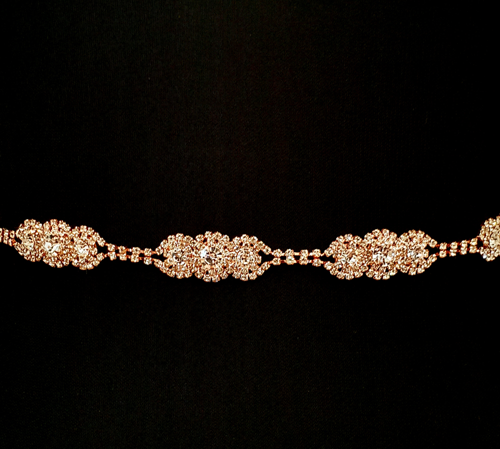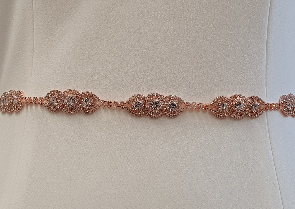 Tie belt created with chains of diamante embellishments. Easily removed from ribbon to allow direct attachment to your dress (if desired).