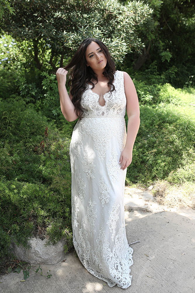Super modern, super flattering gown with dramatic scalloped neckline.