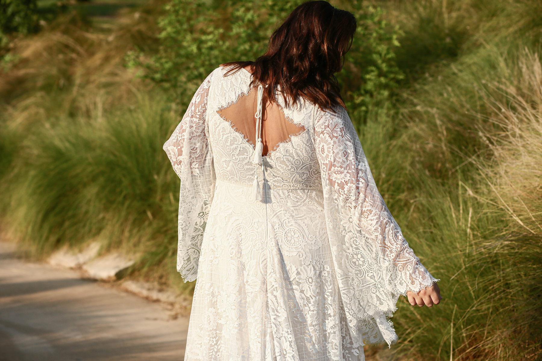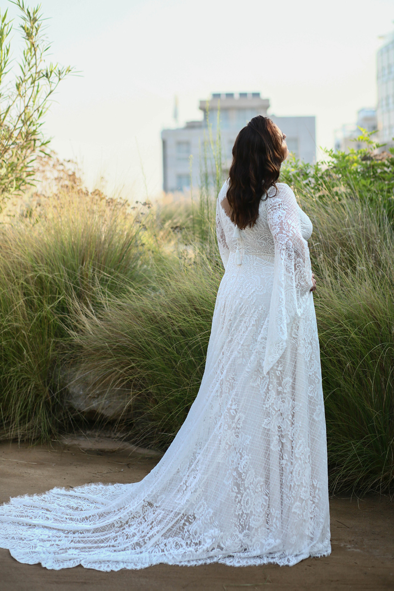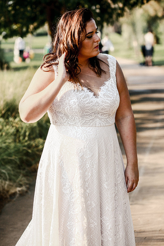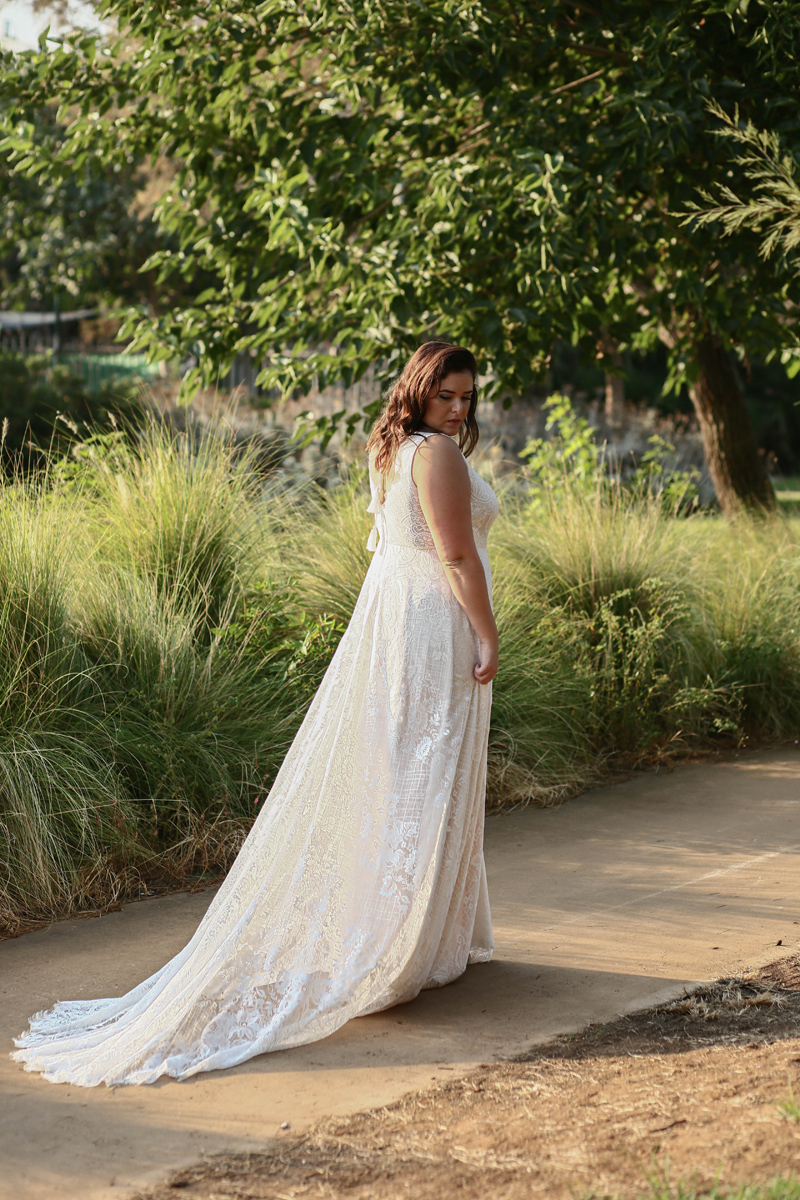 The soft Aline skirt of the Grace gown flows from the hips highlighting the waist. The gown features an elegant v neckline and back. This gowns shows just the right amount of skin